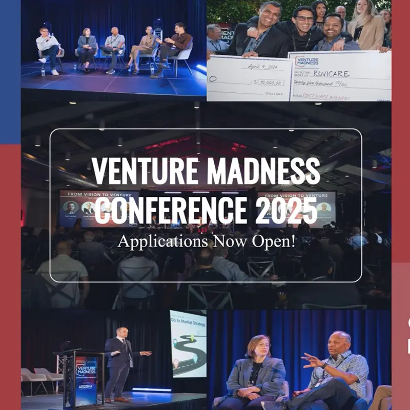 📣 The application window for #VM25 is OPEN but the deadline to apply is December 18, 2024, at 3pm AZ time. The Venture Madness Conference is Arizona’s largest venture capital conference and pitch event that connects serious investors with the best and most promising startups. This is YOUR opportunity to showcase your venture, gain exposure, and potentially secure funding from top investors. Get ready to act fast & join the madness! 😎 Apply today: https://bit.ly/4hTZpfr
